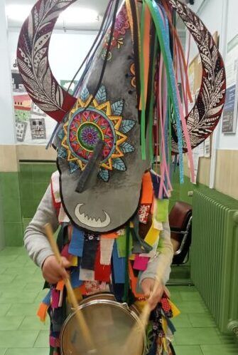 Jarramplas un año más bailó en el patio mientras el tamboril y la flauta de Juanjo sonaban.